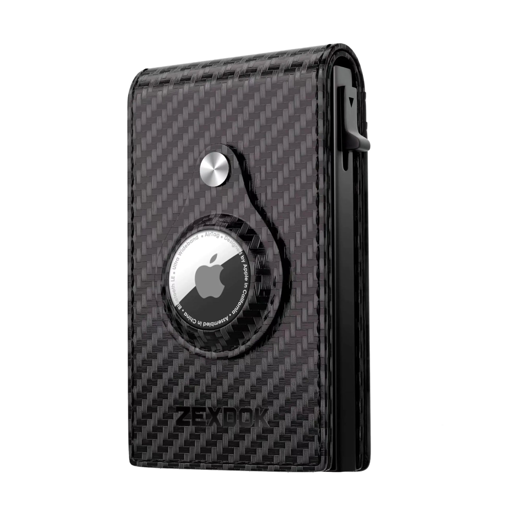 Airtag Wallet RFID Blocking Minimalist Leather Wallet Ultra-Thin Leather Airtag Wallet with Smart Pop-Up Card Holder (Carbon Black)…