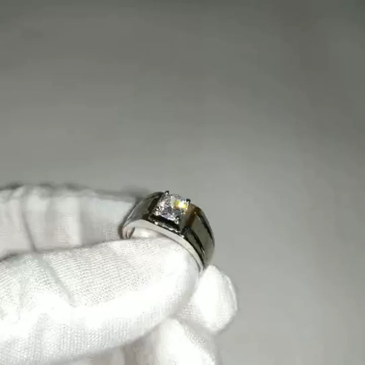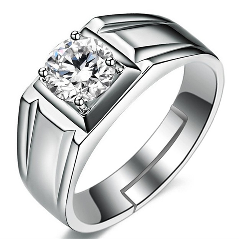 S925 Silver Men's Ring with Simple Design and Simulated Diamond