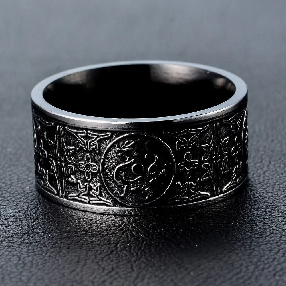 Titanium Steel Black Four Divine Beasts Men's Ring